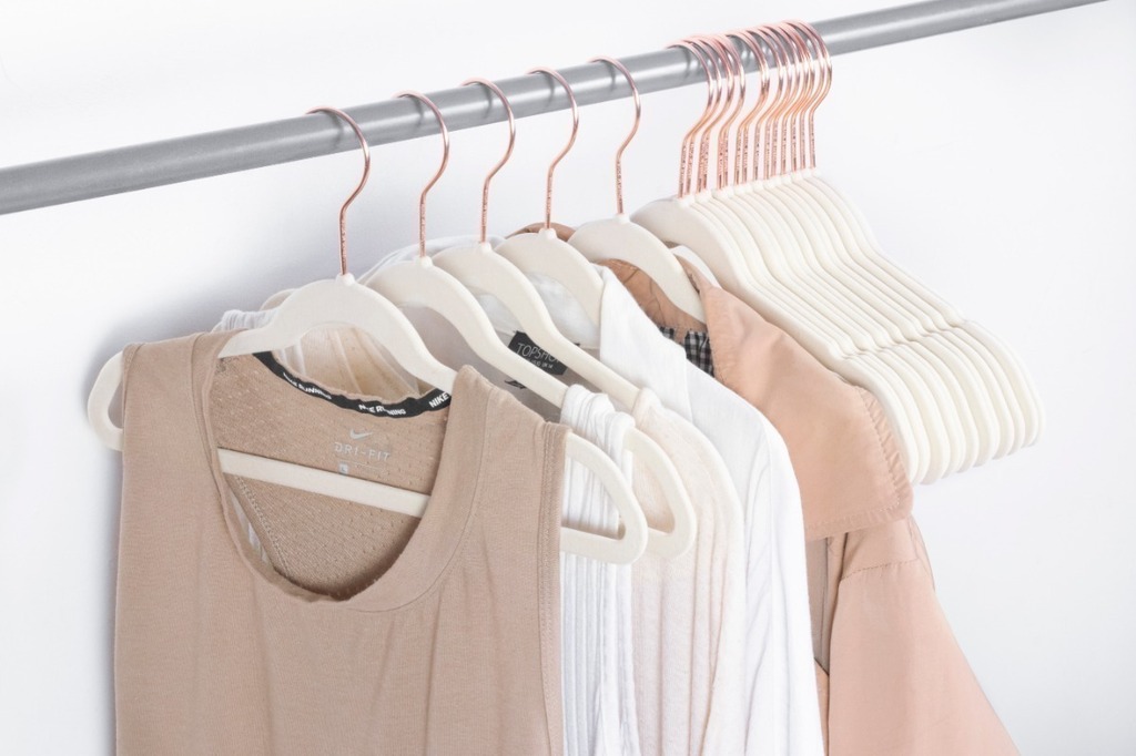 SUPERFICIE ANTIDESLIZANTE: la superficie de terciopelo aumenta la fricción entre la percha y la ropa, y evita que la ropa se resbale